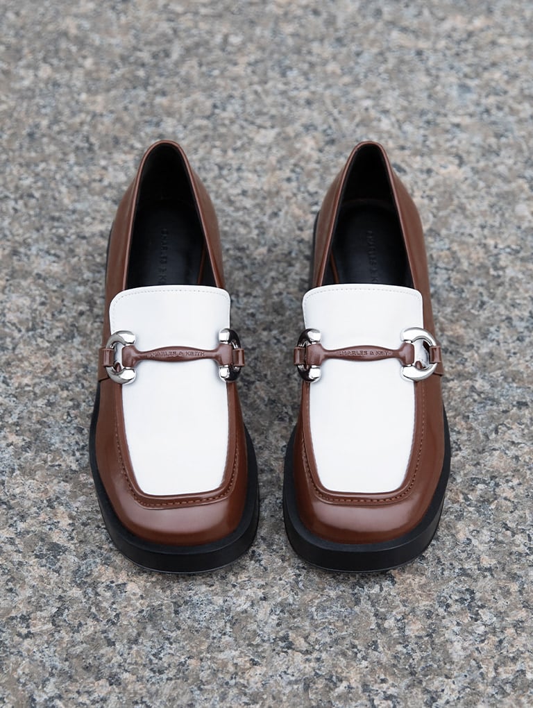 With their chunkier silhouette, loafers are robust enough for everyday wear. Additionally, their clean lines and tapered profile make them an elevated yet effortless choice for almost any occasion. A sleek, versatile option features minimal embellishments, like the metallic-accent lloafers in classic black. They will pair well with shorts and trousers alike, so you can opt to dress them up or slip them on for errand runs. For a bolder look, a two-toned colourway is striking yet wearable, as seen on the dark brown Catelaya metallic accent loafer pumps.